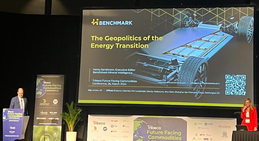 Scott Clements of Tribeca, an Asia-Pacific investment and advisory firm, kicked off day one. Scott acknowledged the challenges of tight capital markets and somewhat muted demand but underscored critical minerals’ crucial role in achieving global decarbonisation goals. He emphasised the need to secure upstream (mine site) supply of a number of commodities and getting them through to production.