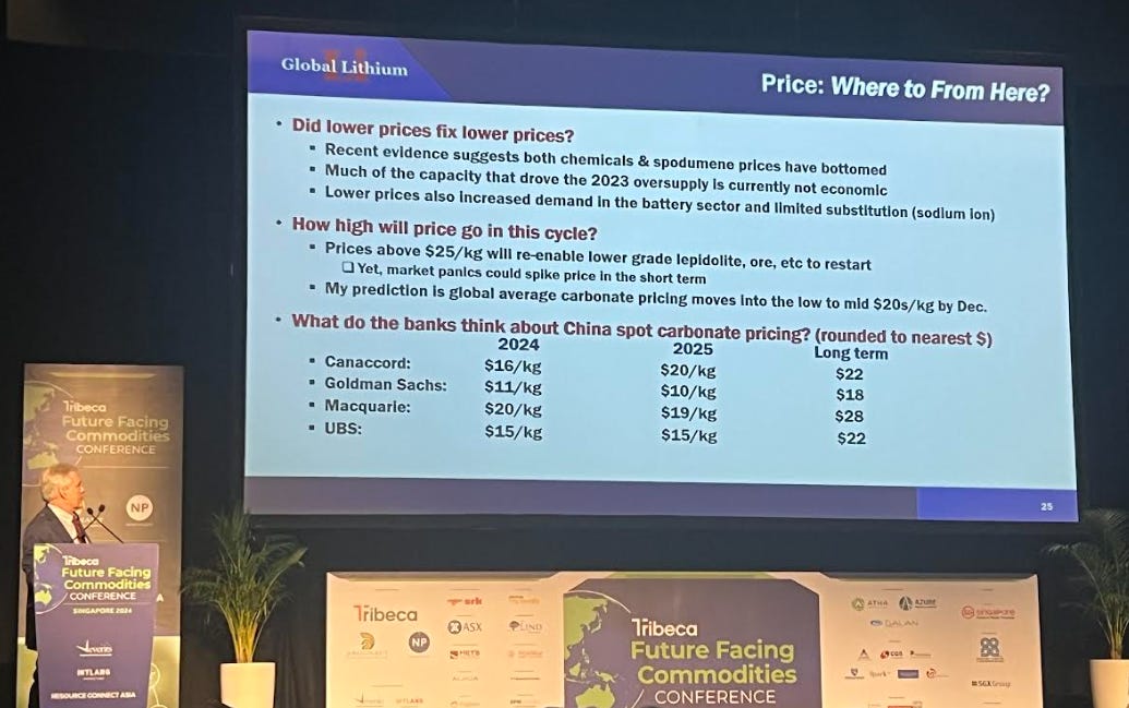 Joe Lowry, the industry veteran we mentioned above (who, as a side note, sold the first lithium to Sony back in the 1990s), predicts a persistent, long-term structural deficit in lithium supply. This, he believes, will drive a price rebound by the end of 2024. Joe also emphasised that there is not one lithium price, emphasising that the Chinese, Japanese, Korean, and emerging US and European markets operate with distinct pricing dynamics. Taking in just one lithium price can be detrimental to one’s research.