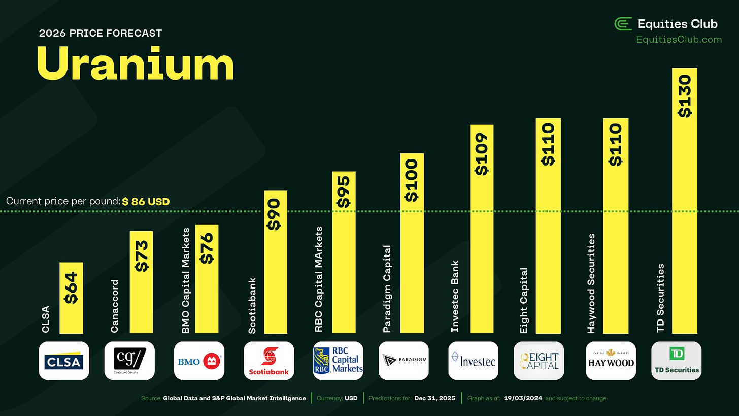 Unlike lithium, the market’s buzzing for uranium right now. Demand looks set to skyrocket: China’s on a nuclear reactor building spree, and Europe and the US aren’t far behind. The hype is real, and it didn’t matter where the uranium was – the USA, Canada, Africa, even Western Australia (where you can’t mine uranium currently). Everyone’s bullish on pricing and demand.