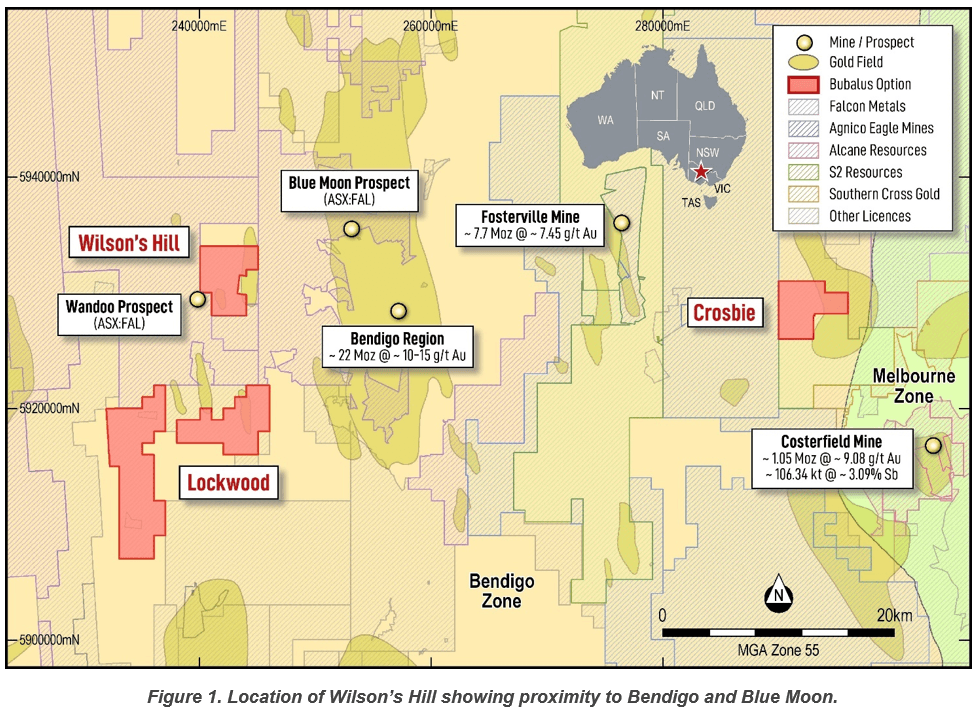 The Wilson’s Hill Gold Project lies just west of Bendigo in a region that has historically produced more than 60 million ounces of gold.