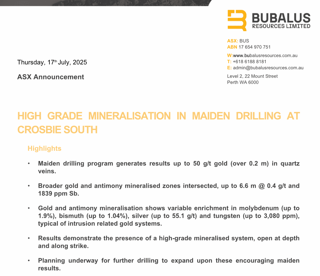 Bubalus has confirmed mineralisation and shown there’s something real in the ground. These holes weren’t dusters, and that’s encouraging.
