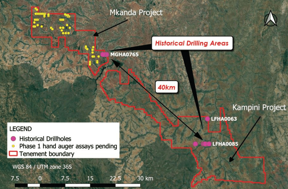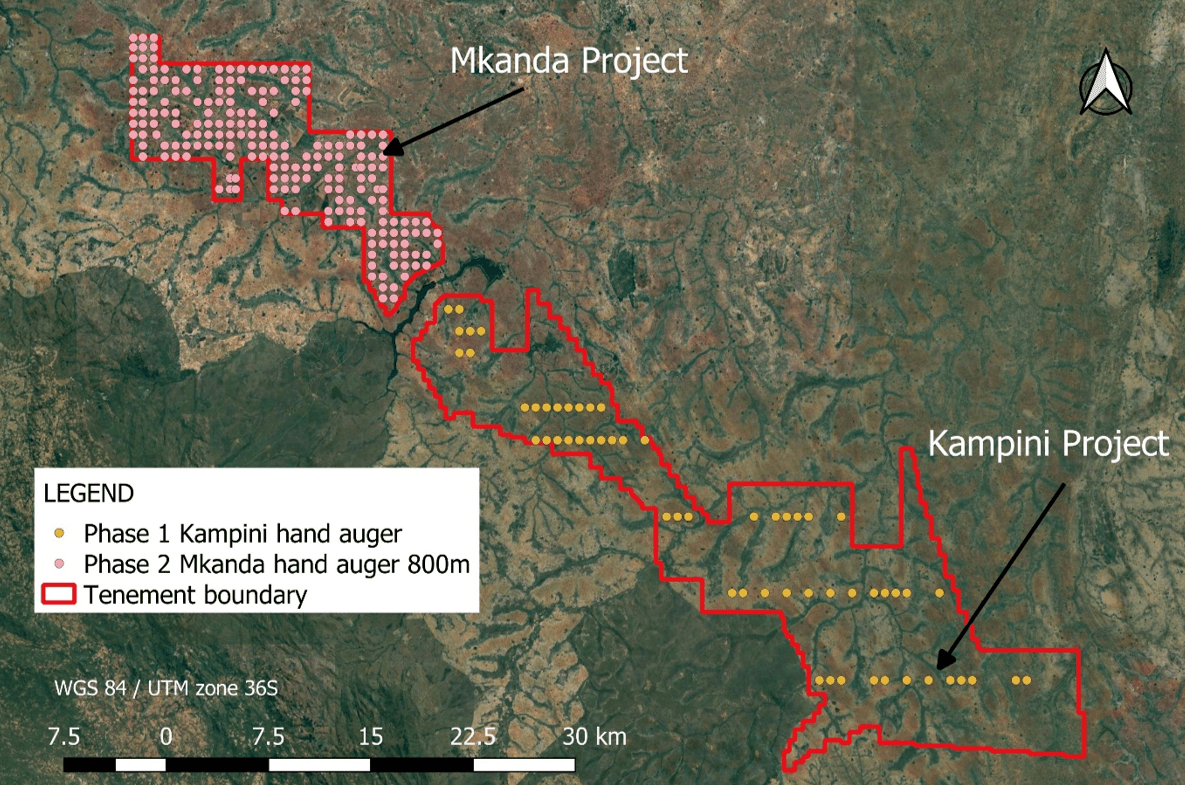 Historical work shows rutile mineralisation across two key projects – Kampini and Mkanda – roughly 40 kilometres apart.