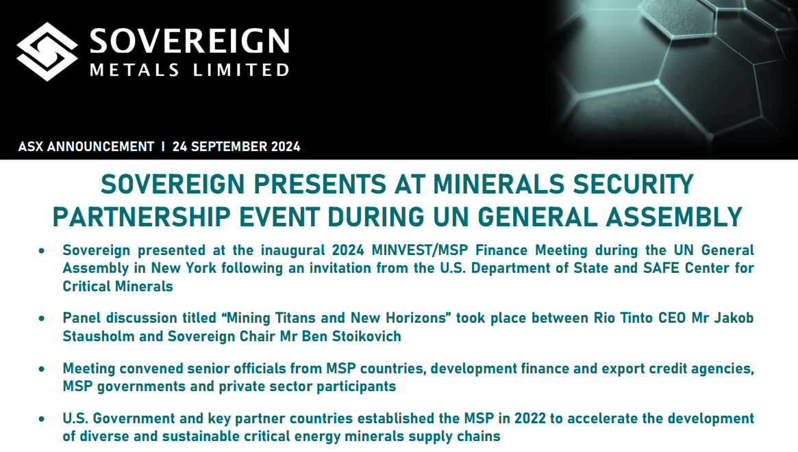 At last year’s UN General Assembly, Rio Tinto’s CEO and SVM’s Chairman shared a panel with US bigwigs to discuss rutile’s role in strengthening Western supply chains.