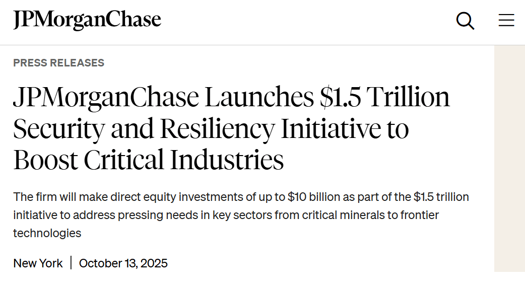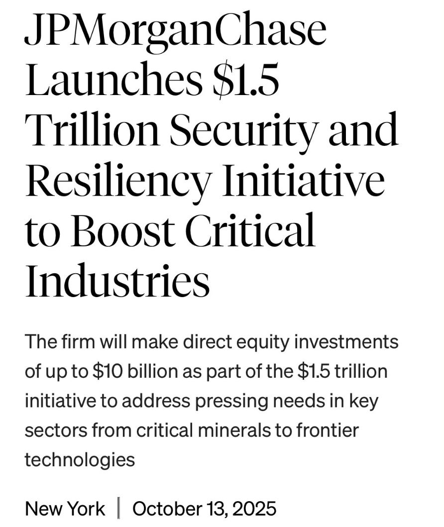 Private capital’s following suit, with J.P. Morgan’s US$1.5 trillion Security and Resiliency Initiative including targeted investments in materials such as titanium. It’s another nod to how critical these metals are becoming for defence, manufacturing, and robotics.