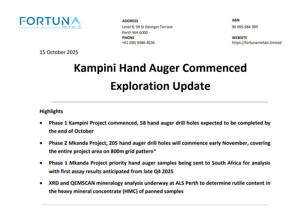 Fortuna Metals (ASX: FUN) has wasted no time putting boots on the ground in Malawi, moving from acquisition to active drilling in just a few months as it pushes ahead in a world-class rutile province.