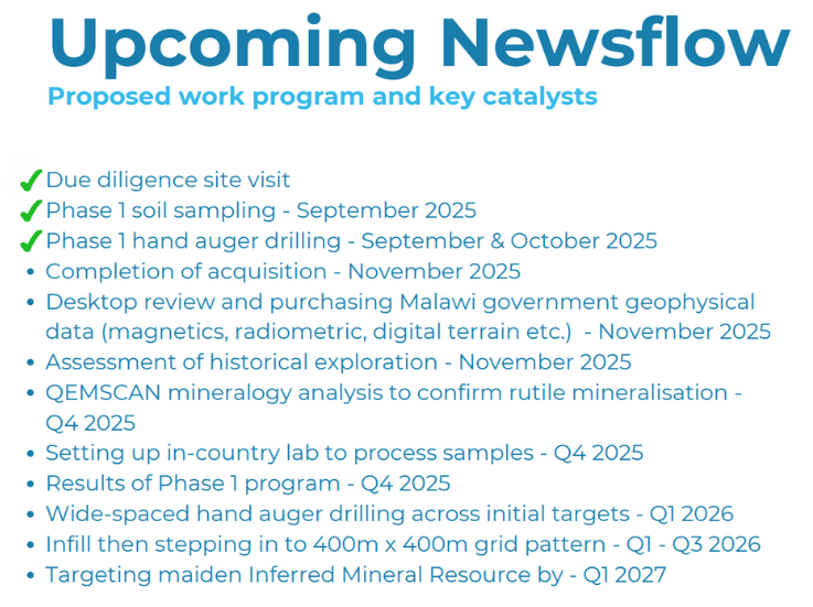 FUN is moving fast in Malawi, with soil sampling done and auger drilling nearly wrapped up, with visible rutile grains showing up already.