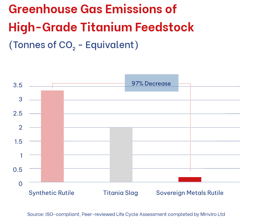 Bridging the gap in the interim is synthetic rutile, producing 30 times more greenhouse gas emissions than natural rutile, like Sovereign has. This is becoming a real problem as carbon pricing spreads globally and companies face pressure to clean up their supply chains.