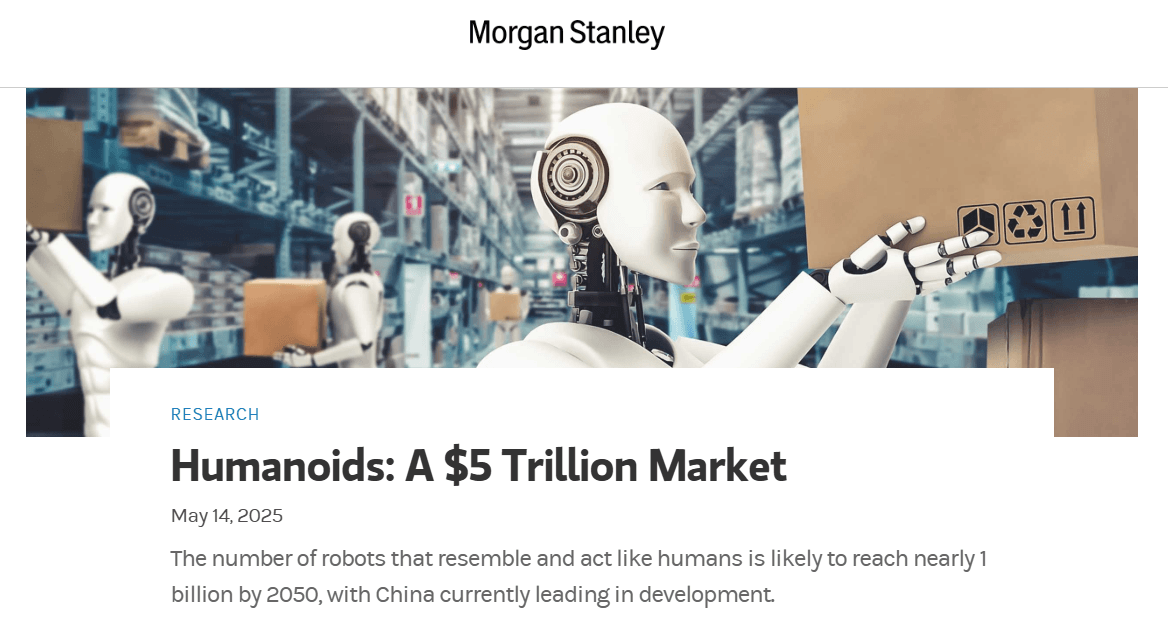 “Contemplating future global GDP before AI robots is like contemplating global GDP before electricity.”– Morgan Stanley’s Adam Jonas