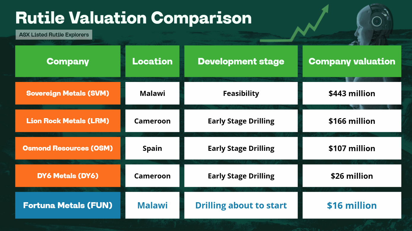FUN’s new 658 square kilometre tenement also sits right next door to Sovereign Metals (ASX: SVM), which has already proven Malawi hosts the world’s largest rutile deposit and a world-class graphite resource.
