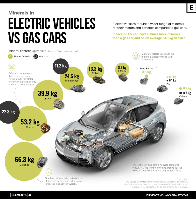 Then there’s graphite. An EV battery contains 50-55kg of graphite versus just 8-13kg of lithium. Despite that, most people are focused on lithium while the graphite supply quietly tightens.