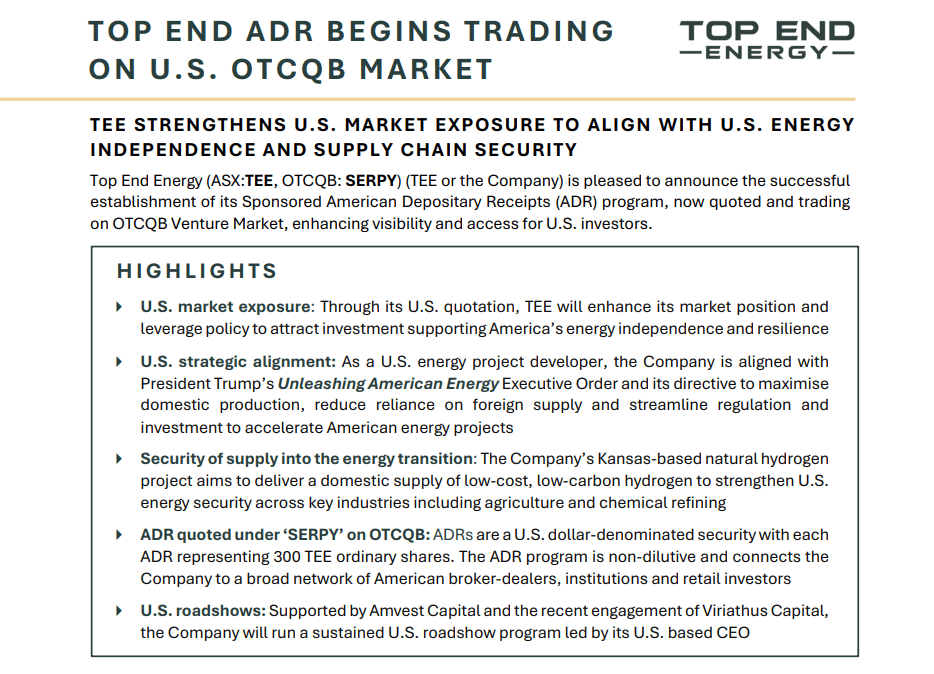 TEE has launched straight onto the OTCQB under ticker SERPY, giving it visibility and access in the US market. US investors can now buy TEE directly, while it keeps its primary listing on the ASX.