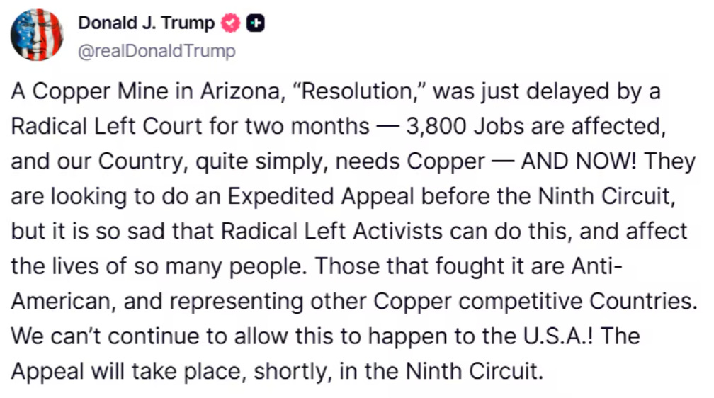 Our two biggest miners got summoned to the Oval Office this week. Rio Tinto and BHP chiefs sat down with Trump to talk about the Resolution Copper Project, a massive Arizona deposit that could supply a quarter of America’s future copper needs.