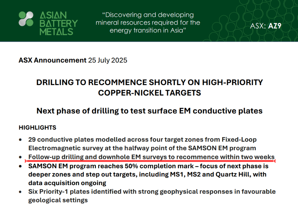 The new campaign is guided by earlier geophysics that lit up three clear zones, each showing signs of sulphide-rich mineralisation underground. That kind of signature tends to show up when there’s real copper in the system.