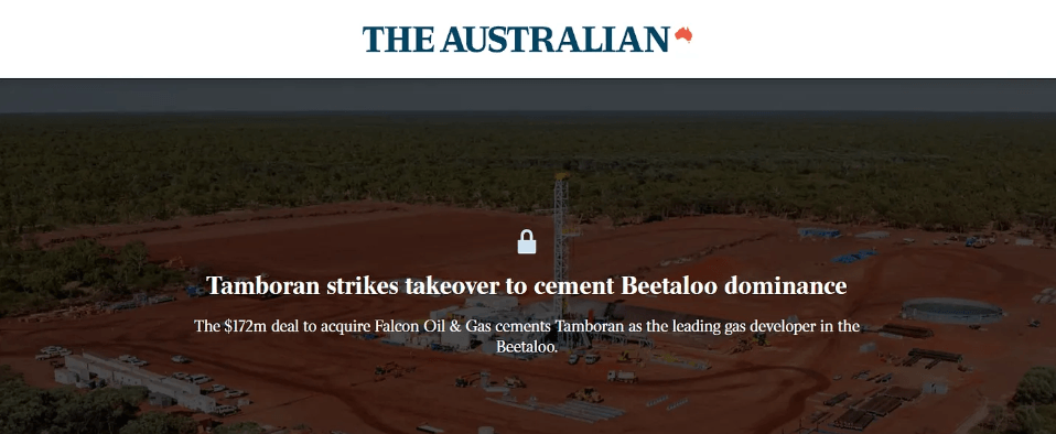 Tamboran Pays $172m for Falcon Beetaloo Basin Ground