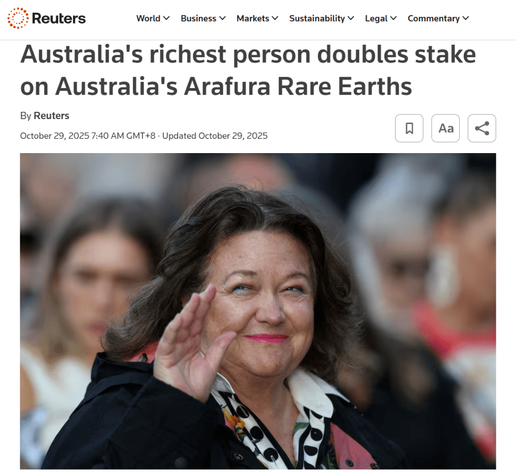 For investors in ARU, Rinehart’s involvement adds weight, stability, and credibility to the project. Her continued support reinforces confidence in the economics and its strategic value to Australia’s critical minerals ambitions.