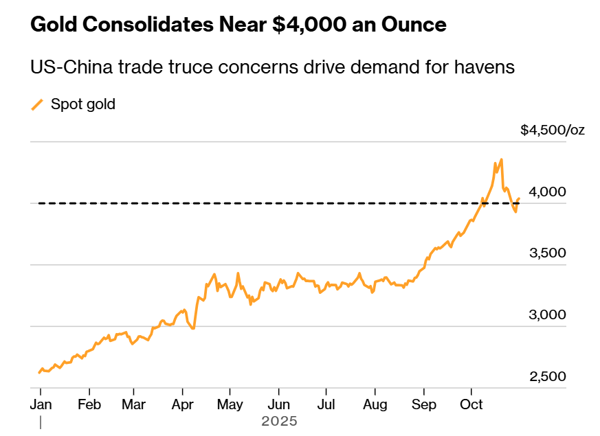 - Gold dips, then rebounds above US$4,000/oz