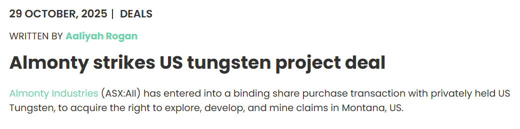 - Tungsten’s back, thanks to Almonty’s US play